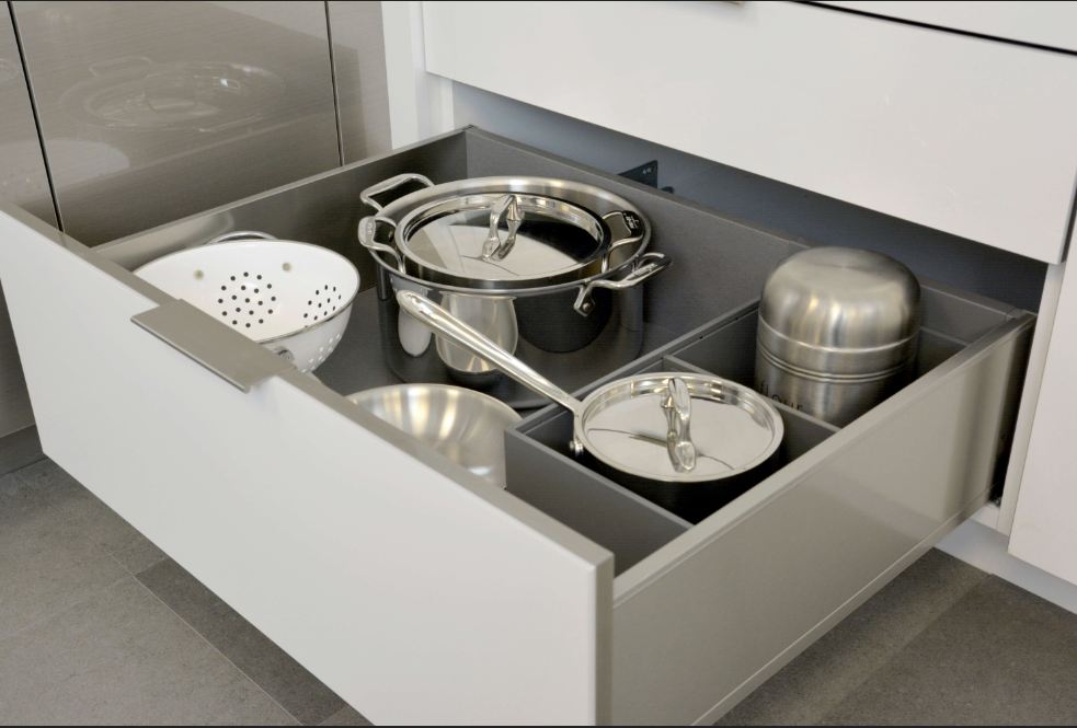Replace lower cabinets with deep pull-out drawers for bulky items like pots and pans. Above them, use shallow drawers for utensils, spices, and cooking tools. This separation means you won’t have to rummage through heavy pots for teaspoons.