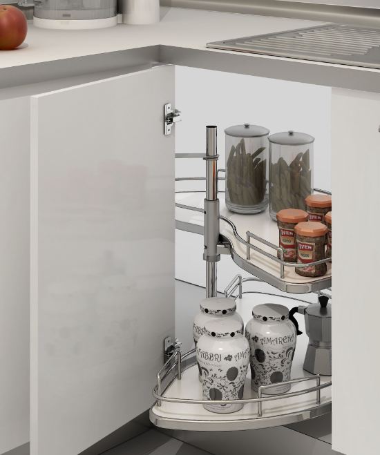 Corners are often dead space in kitchens. A Lazy-Susan revolving corner unit lets you access those deep corners without losing things in the back. You turn the carousel and reach pots, pans, or mixers easily. Our customers love this smart kitchen storage solution because the rotation is smooth, the shelves are strong, and it makes things easily accessible.